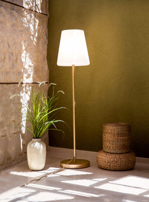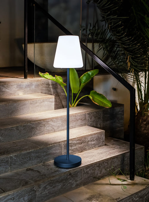 Light up your terrace, garden, or balcony with Newgarden’s weather-resistant outdoor floor lamps. Designed to brave sun, rain, and wind, these models are made from UV-treated, shatterproof polyethylene and other outdoor-safe materials like treated wood or bamboo. Featuring rechargeable solar or battery-powered lighting, they provide hours of illumination—perfect for evening gatherings or creating a relaxing atmosphere under the stars.